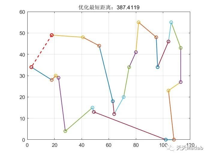 计算目标函数:计算当前路径的总距离作为目标函数值。
