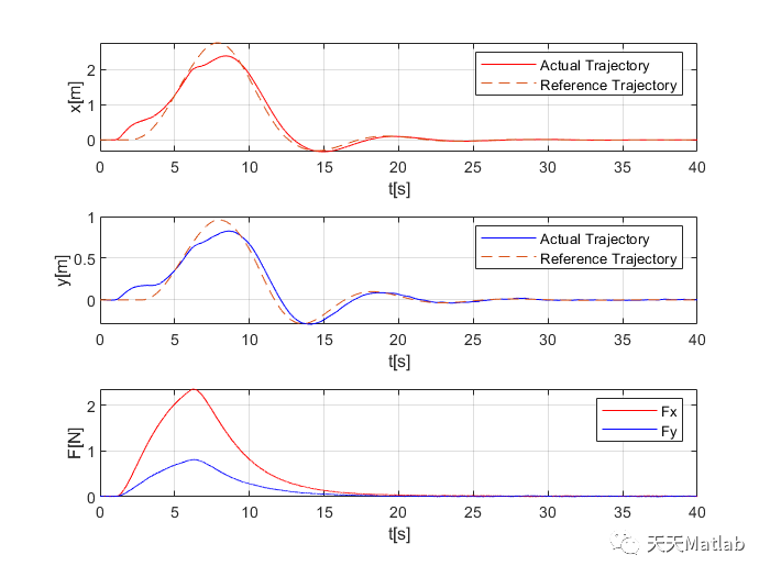 %% Definition of Kalman Filter Matrixes% We consider the augmented state xk = (x,f)Ak = zeros(18,18);Ak(1:15,1:15) = A;Ak(4:6,16:18) = 1/m*eye(3);Bk = zeros(18,4);Bk(1:15,1:4) = B(1:15,1:4);Ck = zeros(6,18);Ck(1:3,1:3) = eye(3);Ck(4:6,7:9) = eye(3);Dk = zeros(6,4);v = 0.001*ones(6,1); Tn = 0.001;W = 1000*eye(18); % Noise MatrixesV = 10*eye(6);% Computation of Kalman Gain[R,P,E] = lqe(Ak,eye(18),Ck,W,V); % Kalman Gain