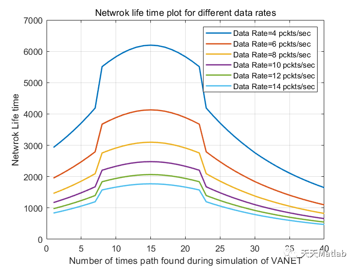 function [E,pcktlossrate,total_dist,pcktloss,thrgput]=evaluation(nodtble,node_rsu)% take out the distance of nodes in routing table from each otherfor ii=1:numel(nodtble)-1distnc(ii)=sqrt((node_rsu(nodtble(ii+1),3)-node_rsu(nodtble(ii),3))^2+(node_rsu(nodtble(ii+1),4)-node_rsu(nodtble(ii),4))^2);endtotal_dist=sum(distnc); % total distnace from source to destinationtime_consumed=total_dist/(3*10e9);%% Perfromance Evolutionpktsize=64;%in bytesdatarate=[4,6,8,10,12,14]; % packets/secEtx=1;% in joulesEini=Etx;Elec=50e-9; %amount of Energy consumption per bit in the transmitter or receiver circuitryEmp=0.0015e-12;%Amount of energy consumption for multipath fadingEDA=5e-9; %Data aggregation energy.% paraemetrs for energy calculation using raio model of message% transmissionalpha1=50e-9; %J/bitalpha2=0.1e-9; %J/bit/m2alpha=2;Ebit=0.3e-3; % energy assigned to each bit%%%%%%%%%%%%%%%%%%%%%%%%%%%%%%%%%%%%radio Model for energy consumption is% E=alpha1+alpha2*(dist)^alpha%%%%%%%%%%%%%%%%%%%%%%%%%%%%%%%%%%%%%%%%%%%%hop=numel(nodtble);for ff=1:length(datarate)E(ff)=(alpha1*datarate(ff)*pktsize*8)+(alpha2*datarate(ff)*pktsize*8)*(total_dist)^alpha;% energy loss calculation in transmitting packets at datarateEdata(ff)=Ebit*datarate(ff)*pktsize*8;for ll=1:datarate(ff)Etx=Etx-(Elec*8*pktsize+Emp*8*pktsize);Erx=Eini-Etx;Erx=Erx-(Elec+EDA)*8*pktsize;Eini=Etx;if Etx<0.98pcktloss(ll)=1;elsepcktloss(ll)=0;endendif hop>4 && datarate(ff)> 6pcktlossrate(1,ff)=(datarate(ff)-7)/datarate(ff);elsepcktlossrate(1,ff)=0;endthrgput(1,ff)= (datarate(ff)*pktsize)/time_consumed;end