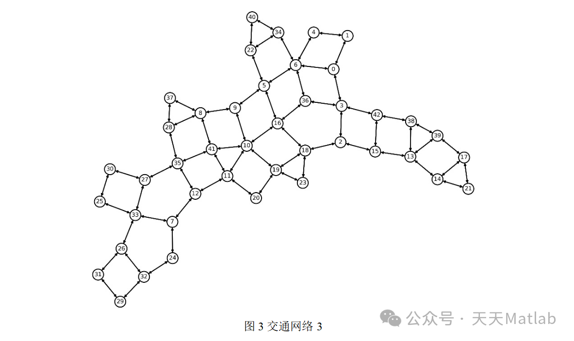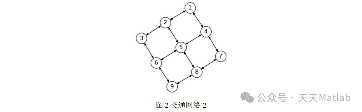 假设每个(起点,终点)对之间使用的路径数不超过5(各路段长度均为单位1,优先选择距离短的路径)。假设交通网络中所有车辆均为无人驾驶车辆,并且所有车辆都服从系统预先规划的路径进行出行。注意:本题的图2和图3中的路段为双向路段,即路段2-3和路段3-2是两条不同的路段。在本题中,不要求交通流量值取整数,即交通流量值可以为任意的非负实数。请依据附件1~3,建立数学模型,完成以下问题: