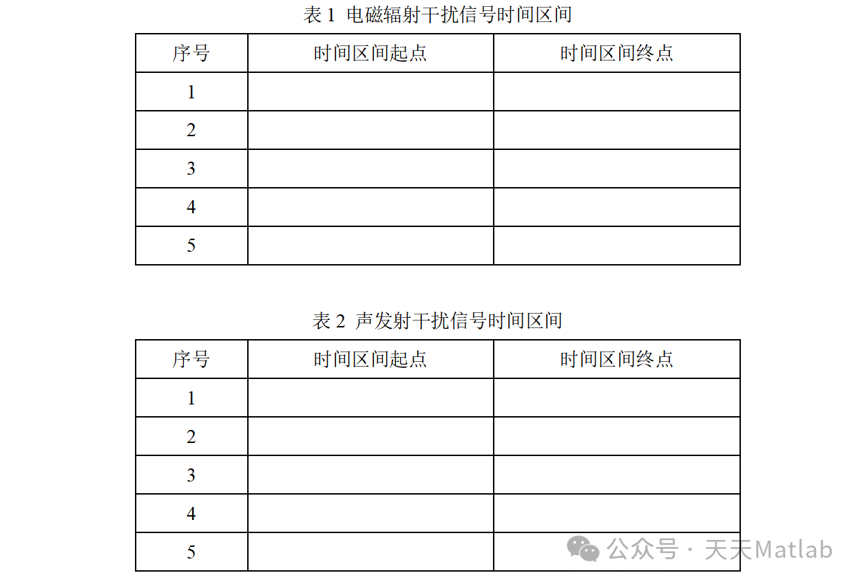 (1.2) 利用问题(1.1)中得到的特征,建立数学模型,对2022年5月1日-2022年5月30日的电磁辐射和2022年4月1日-2022年5月30日及2022年10月10日-2022年11月10日声发射信号中的干扰信号所在的时间区间进行识别,分别给出电磁辐射和声发射最早发生的5个干扰信号所在的区间,完成表1和表2。