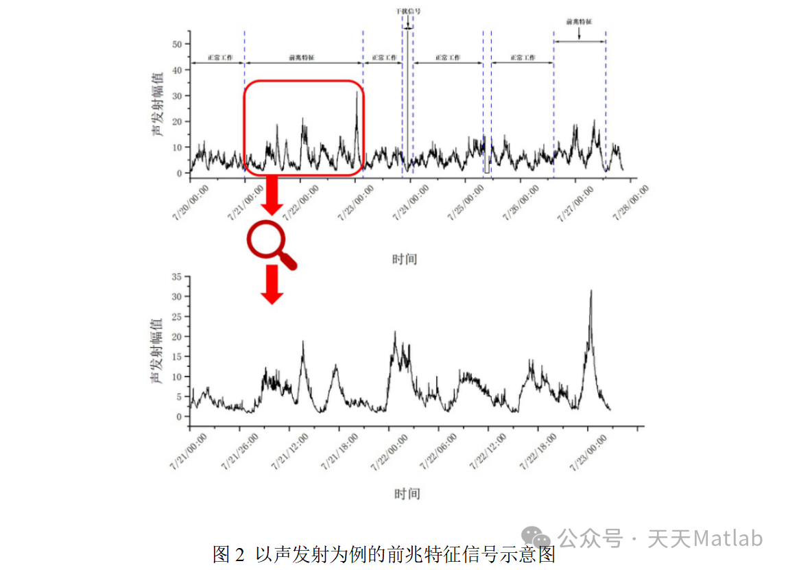 (2.1) 建立数学模型,对电磁辐射和声发射信号中的前兆特征信号进行分析,重点分析信号的变化趋势,分别给出电磁辐射和声发射信号危险发生前(前兆特征)数据的趋势特征(不少于3个)。