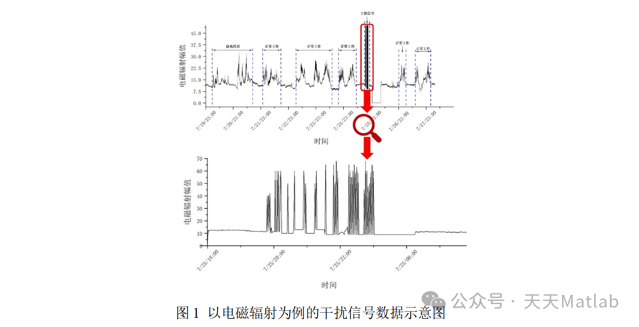 问题1:如图1,已知现场工作面的部分电磁辐射和声发射信号中存在大量干扰信号,有可能是工作面的其他作业或设备干扰等因素引起,这对后期的电磁辐射和声发射信号处理造成了一定的影响。应用附件1和2中的数据,完成以下问题。