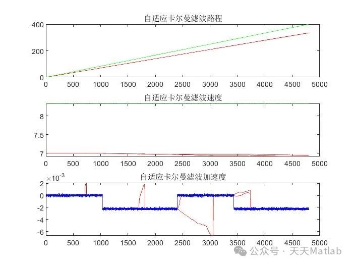 一辆汽车沿标准400米跑道,以速度v=30Km/h做二维水平运动,车上安装有加速度传感器,分别感知汽车前后、左右运动的加速度。请设计过程噪声时变强跟踪自适应滤波器,估计汽车运动的瞬时速度v(t)和行走距离s(t)。