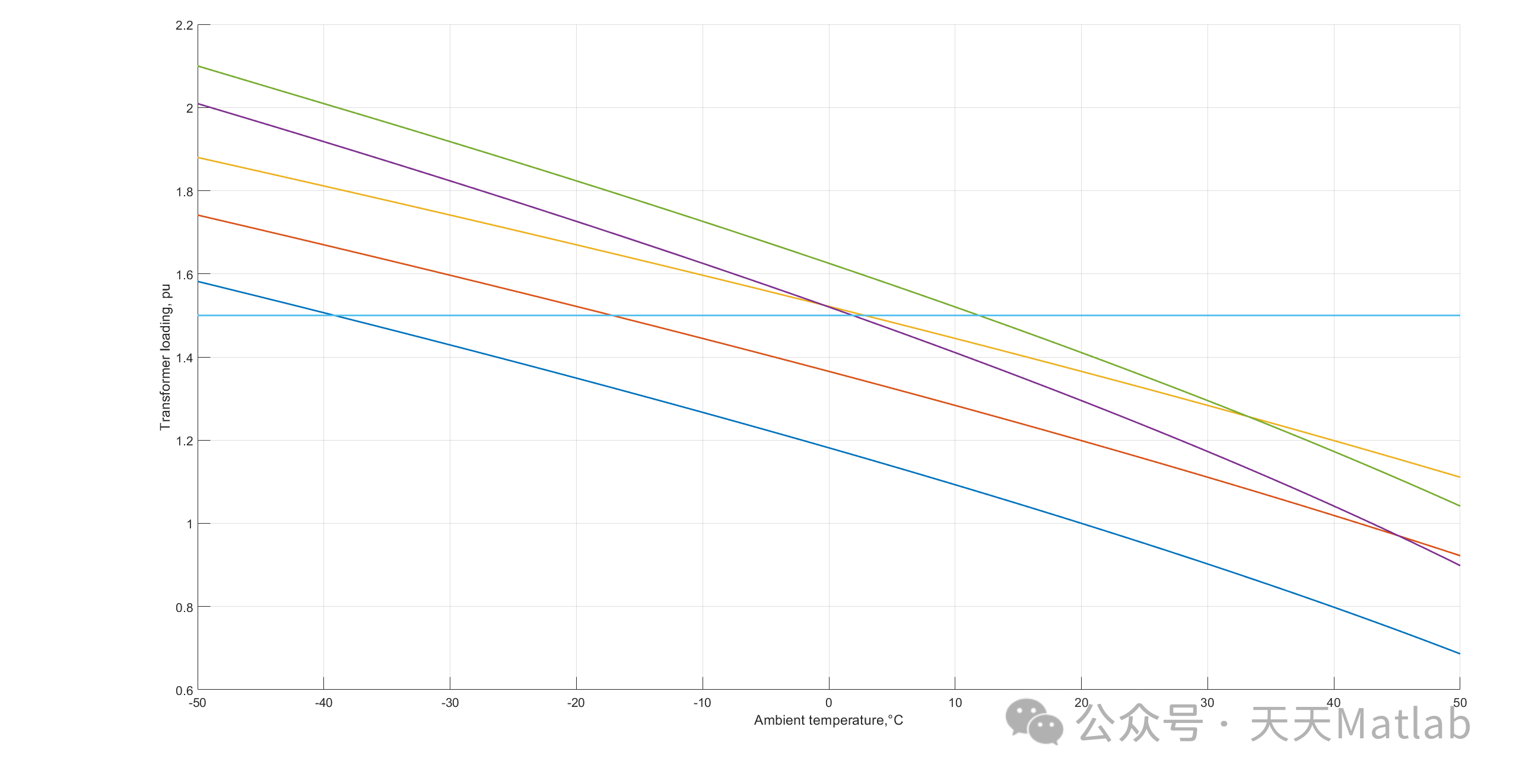 %% Finding the feasible regions of ONAF transformer% Finding a power limit for ToT limit[Power_limit_TOT]=feasible_region_TOT(AMB,TOT_limit);% Finding a power limit for design HST[Power_limit_HSTnormal]=feasible_region_HST(AMB,HST_normal);% Finding a power limit for a HST limit[Power_limit_HSTlimit]=feasible_region_HST(AMB,HST_limit);% Selecting the lowest line between three areas (defined above)top_line=min(min(Power_limit_TOT,Power_limit_HSTlimit),current_limit);end % end of function