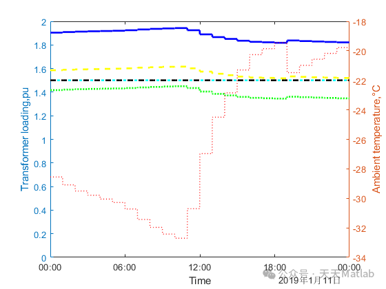 基于时域仿真方法: 利用电力系统仿真软件,可以模拟变压器在不同动态负载条件下的运行状态,并通过仿真结果评估变压器的额定值。该方法可以考虑电力系统中的各种因素,如负荷变化、系统故障、谐波电流等,更加全面地反映动态负载对变压器的影响。