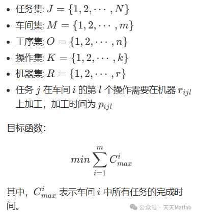 DPFSP 问题可以描述为:假设有 𝑚m 个流水车间,每个车间包含 𝑛n 个工序,每个工序都包含 𝑘k 个操作。每个任务需要在每个车间中完成所有 𝑘k 个操作,操作顺序固定且不可改变。每个操作都需要在指定的机器上进行加工,且每个机器只能同时加工一个操作。目标是确定每个任务在每个车间中的加工顺序,使得所有任务的总加工时间最小。