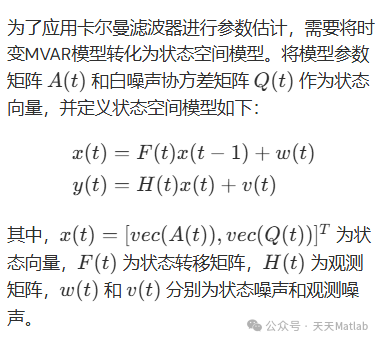 基于上述问题,本文提出了一种基于双扩展卡尔曼滤波器的时变MVAR参数估计方法。该方法通过将MVAR模型转化为状态空间模型,利用双扩展卡尔曼滤波器对状态向量进行估计,从而实现对时变MVAR参数的在线估计。