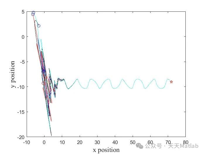 fx = Kp * (leader_x - x(i)) + Kd * (0 - vx(i)); %比例+微分控制