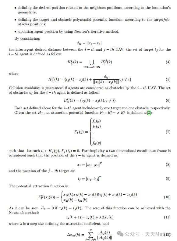 传统的路径规划方法,例如A*算法、Dijkstra算法等,在处理高维空间和动态环境时效率较低,且难以有效处理多无人机编队的碰撞避免问题。而势场法作为一种有效的路径规划方法,因其直观、易于实现的特点而被广泛应用。然而,传统的势场法存在一些不足,例如局部极小值问题和计算效率问题,尤其在多无人机环境下,这些问题更为突出。
