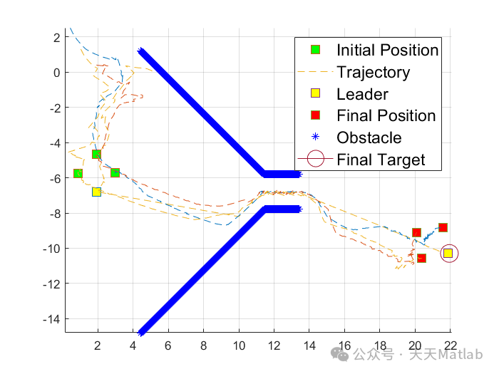 以下为Matlab代码片段,展示了改进的势场法和领导跟随者策略的实现:
