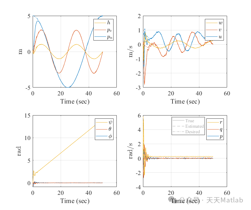 无人机技术近年来发展迅速,其在各个领域的应用日益广泛。然而,如何在复杂环境中实现无人机的自主导航和精确定位仍然是一个具有挑战性的课题。同步定位与建图 (Simultaneous Localization and Mapping, SLAM) 技术为解决这一问题提供了有效的途径,它能够让无人机在未知环境中同时构建环境地图并确定自身位置。本文将探讨基于扩展卡尔曼滤波器 (Extended Kalman Filter, EKF) 实现三维 SLAM,并结合线性二次型调节器 (Linear Quadratic Regulator, LQR) 进行轨迹控制的方案,并给出相应的 MATLAB 代码实现框架。