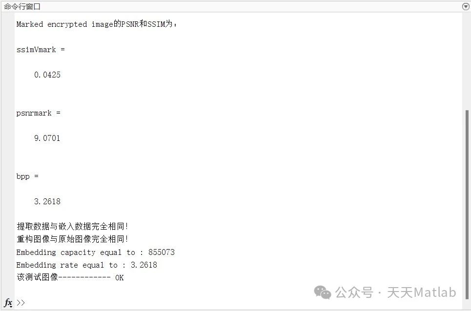 最后,利用比特替换技术将附加信息嵌入到标记像素的预留空间中。 由于霍夫曼编码的特性,部分像素会留有未被霍夫曼码字完全占用的比特位,这些比特位就构成了嵌入附加信息的预留空间。 通过合理的比特替换策略,将附加信息嵌入到这些预留空间中,确保嵌入过程不影响图像的恢复。