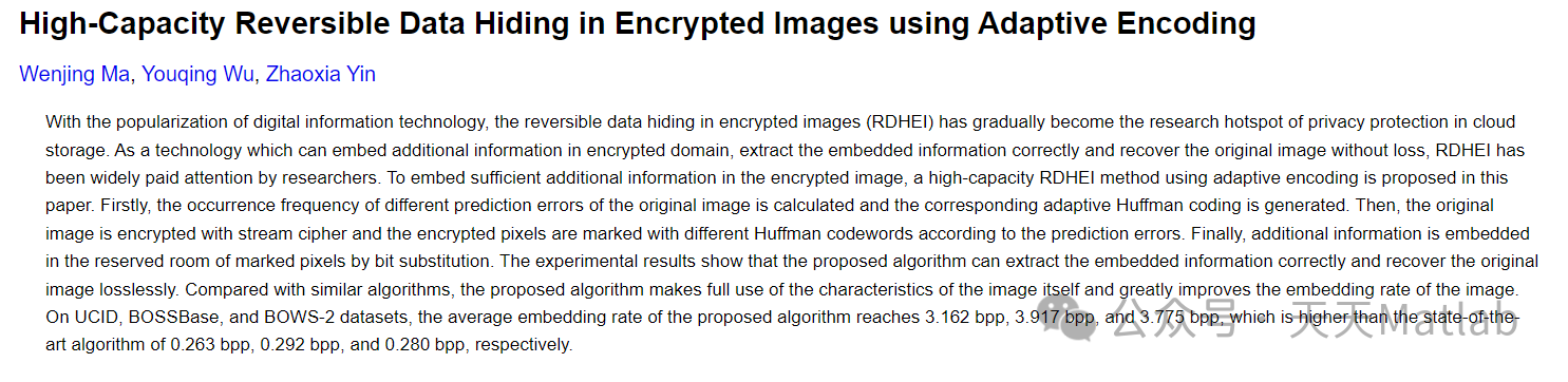 现有的 RDHEI 方法主要面临着嵌入容量有限的挑战。如何在保证图像可逆恢复和安全性的前提下,提高嵌入信息容量,是该领域亟待解决的关键问题。本文提出了一种基于自适应编码的高容量RDHEI方法,旨在通过充分利用图像数据的统计特性,提高嵌入率,从而提升 RDHEI 技术的实用性。