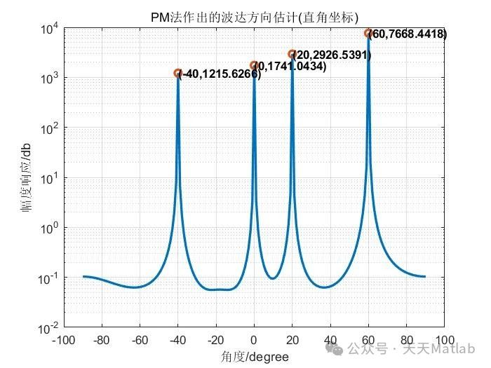 PM算法的优势在于其计算复杂度相对较低,且在低信噪比环境下具有较强的鲁棒性。这是因为PM算法利用迭代的方式逐渐逼近真实的波达角,而不是直接依赖于特征分解或子空间分解,从而减少了噪声的影响。