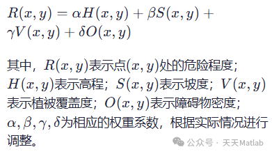 为了准确评估山地环境的危险性,本文构建了一个综合考虑多种因素的山地危险模型。该模型考虑了以下几个关键因素: