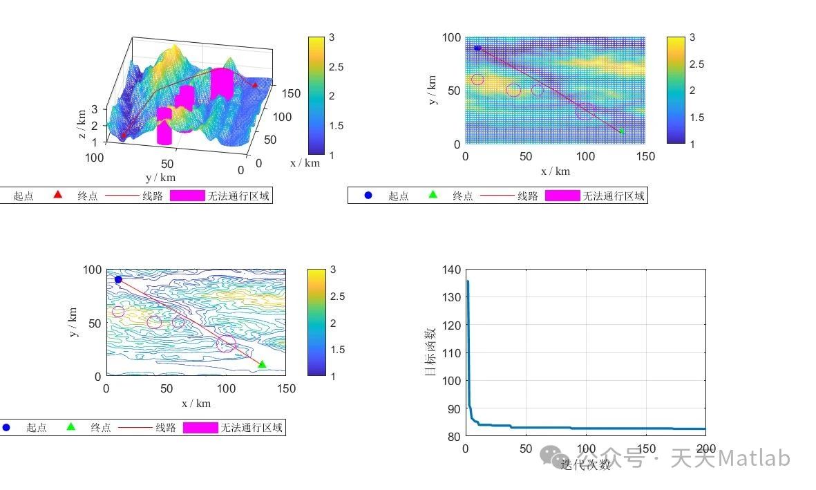 随着无人机技术的快速发展,无人机在各个领域的应用越来越广泛,例如地形测绘、环境监测、灾害救援等。然而,在复杂的山地环境中进行无人机飞行,面临着诸多挑战。复杂的山地地形往往包含陡峭的山坡、峡谷、植被等障碍物,这些因素都会对无人机的飞行安全造成威胁。因此,设计一种高效、安全的无人机路径规划算法至关重要。