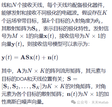 一个典型的极化MIMO雷达系统包含𝑀M个发射天线和𝑁