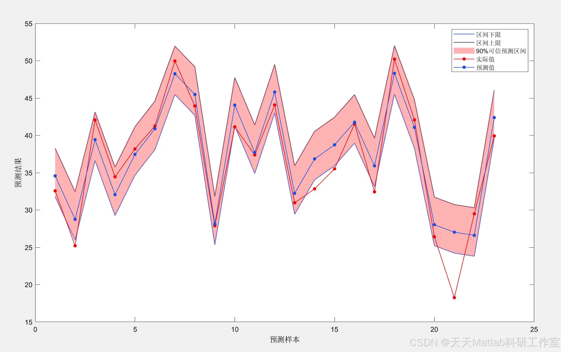 多变量回归预测在诸多领域具有广泛应用,例如经济预测、环境建模和风险评估等。然而,传统的点预测方法只提供单一预测值,忽略了预测本身存在的不确定性。这在实际应用中可能导致决策失误,尤其是在高风险场景下。因此,区间预测,即预测一个包含真实值一定概率的区间,显得尤为重要。 多置信区间预测则进一步细化了这种不确定性表达,提供多个不同置信水平的预测区间,从而更全面地反映预测结果的可靠性。