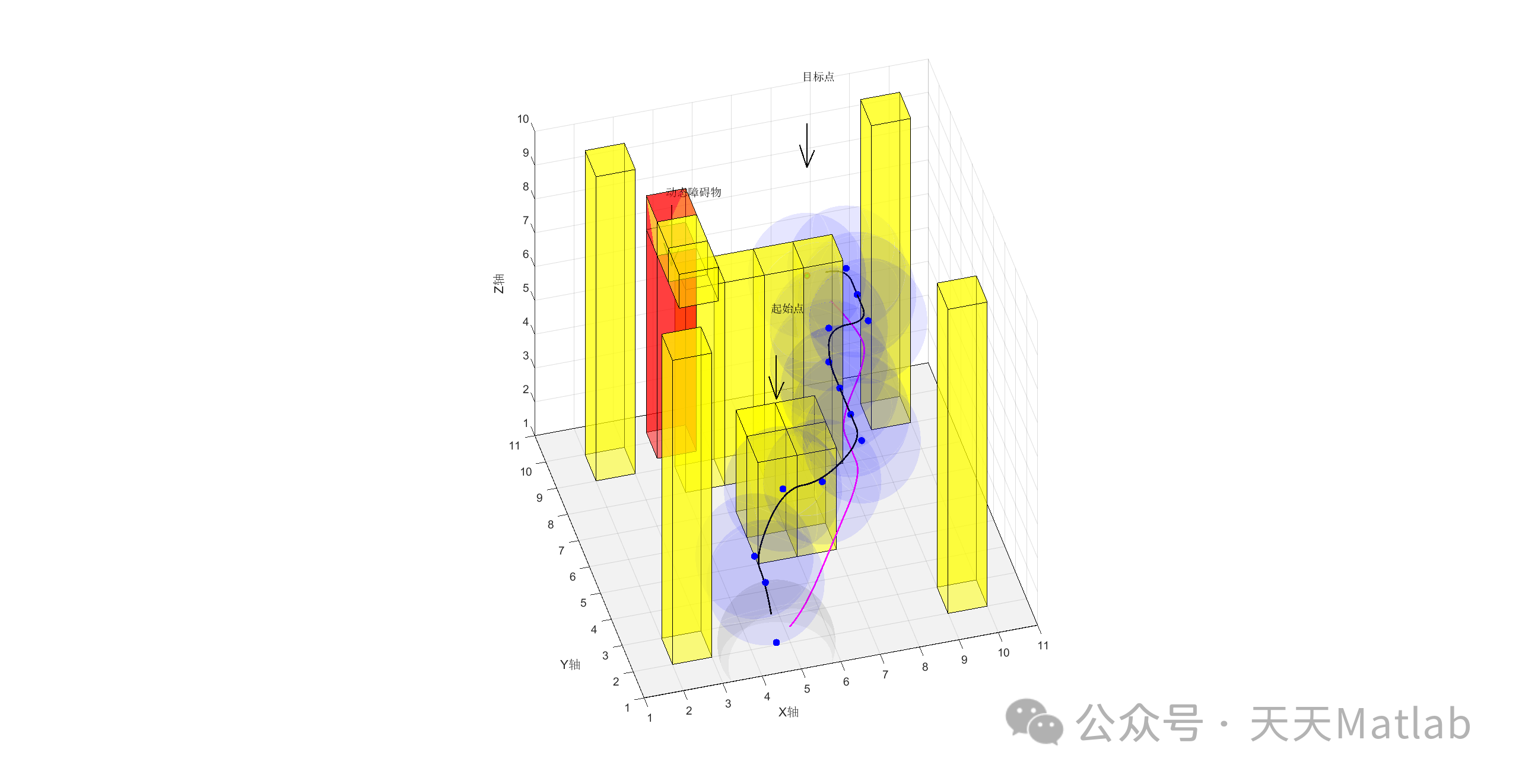 本文提出了一种基于A*算法的无人机三维路径规划算法,并结合预测模型实现了动态避障功能。仿真实验验证了算法的有效性和实时性。未来的研究方向包括: