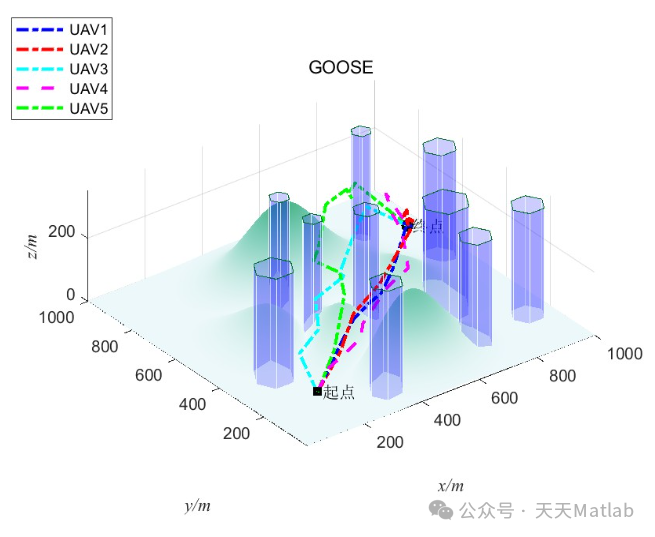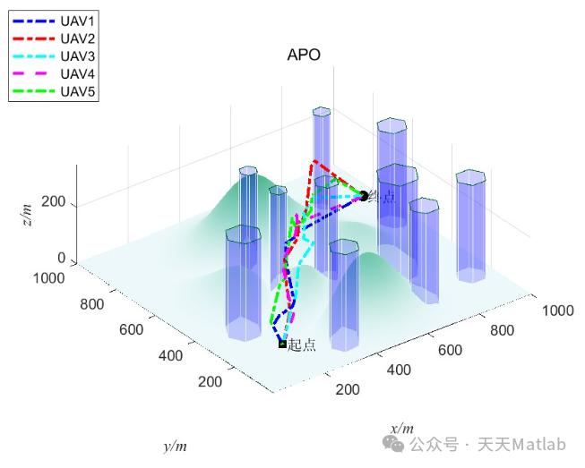 关键词: 无人机集群;路径规划;SFOA算法;APO算法;GOOSE算法;CO算法;PIO算法;优化算法比较