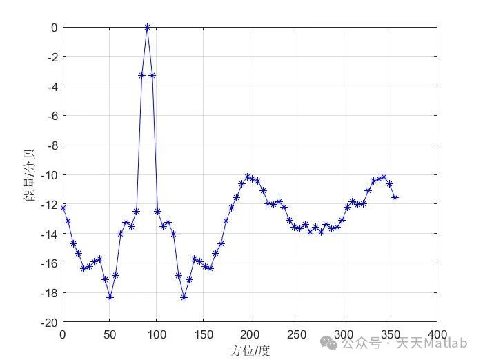 基于MUSIC算法的波束形成: MUSIC (Multiple Signal Classification) 是一种基于特征分解的高分辨率谱估计方法,其能够有效地分辨多个相近的信号源。在宽带波束形成中,MUSIC 算法可以用于估计信号的到达方向 (DOA),然后根据估计的 DOA 设计波束形成权重向量。其优点是分辨率高,能够有效分辨多个目标,缺点是计算量较大,对噪声比较敏感。