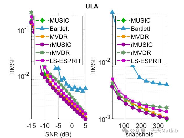 首先,算法性能依赖于信噪比(SNR)。在低SNR条件下,算法的估计精度会显著下降,甚至可能导致DOA估计失败。