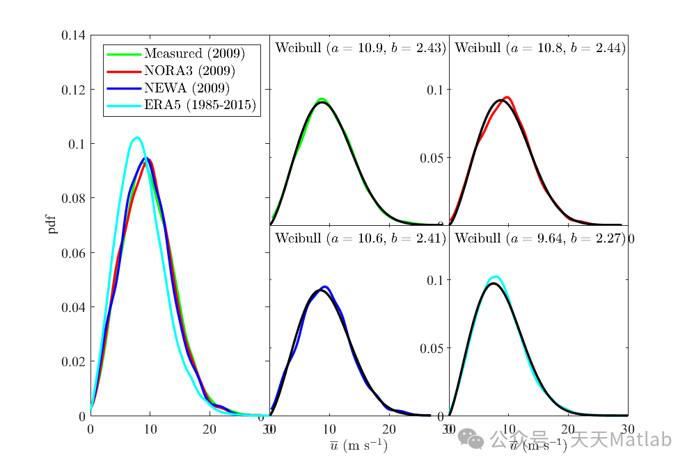 风能密度计算: 基于NEWA、NORA3和现场测量的风速数据,计算风能密度,并比较其差异,评估数据库在风能资源评估方面的准确性。