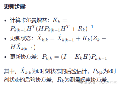 基于上述系统模型,可以利用卡尔曼滤波算法对陀螺仪输出进行滤波和状态估计。卡尔曼滤波算法包括预测和更新两个步骤。