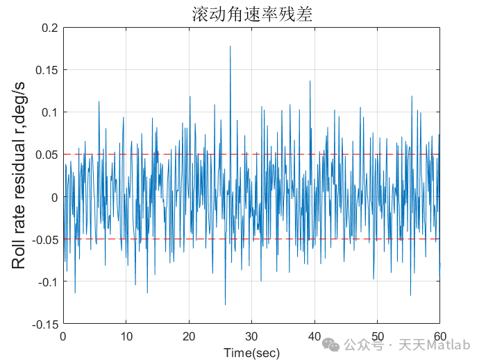 通过卡尔曼滤波器得到的状态估计值与实际测量值之间的差值称为残差,残差可以用于检测陀螺仪漂移故障。定义残差为: