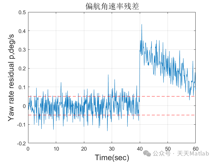 为了验证该方法的有效性,进行了仿真实验。仿真实验中,假设陀螺仪漂移是一个缓慢变化的随机游走过程,并加入高斯白噪声。结果表明,该方法能够有效地检测陀螺仪漂移故障,且具有较高的实时性。具体的仿真结果和参数设置将在论文中详细阐述。