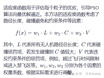 适应度函数用于评估每个粒子的优劣,引导PSO算法向最优解逼近。本方法的适应度函数考虑了路径长度、碰撞避免和约束条件等因素: