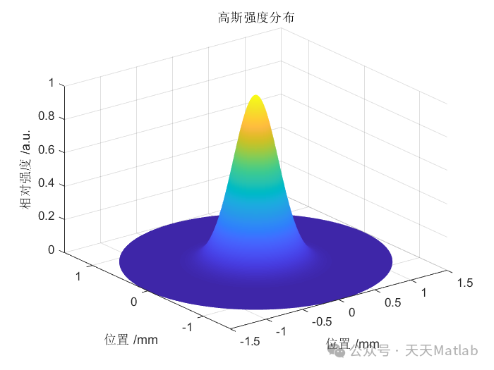 利用Matlab模拟三维高斯光斑分布,主要步骤如下: