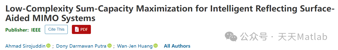 智能反射面 (IRS) 技术作为一种新兴的无线通信技术,凭借其能够通过大量反射单元 (RE) 的相移控制来重构无线信道,极大地提升了无线系统的性能。然而,IRS 系统通常部署大量的反射单元,这使得优化每个反射单元的相移以最大化系统性能成为一个极具挑战性的问题,其计算复杂度非常高。本文针对这一问题,提出了一种低复杂度的维度方向正弦最大化 (Dimension-wise Sinusoidal Maximization, DSM) 算法,用于求解多输入多输出 (MIMO) 网络中最大化和速率的最佳 IRS 相移。该算法充分利用了目标函数关于每个反射单元相移的正弦特性,从而有效降低了计算复杂度,并实现了接近最优的和速率以及更快的收敛速度。
