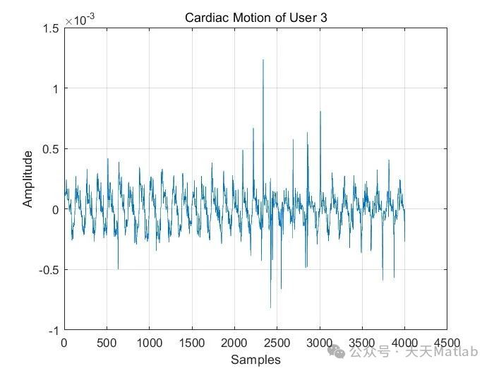 系统首先通过 FMCW 雷达采集用户的胸部运动数据。雷达发射的毫米波信号在遇到目标(即用户的胸部)后发生反射,接收到的信号包含了用户心跳和呼吸等生命体征信息。 user_check.m 脚本允许用户选择一个预先录入的案例,该案例中已经包含了预处理后的用户数据,方便演示系统的后续步骤。 实际应用中,雷达采集到的原始信号通常包含大量的噪声和干扰,需要进行预处理以提高后续算法的准确性。