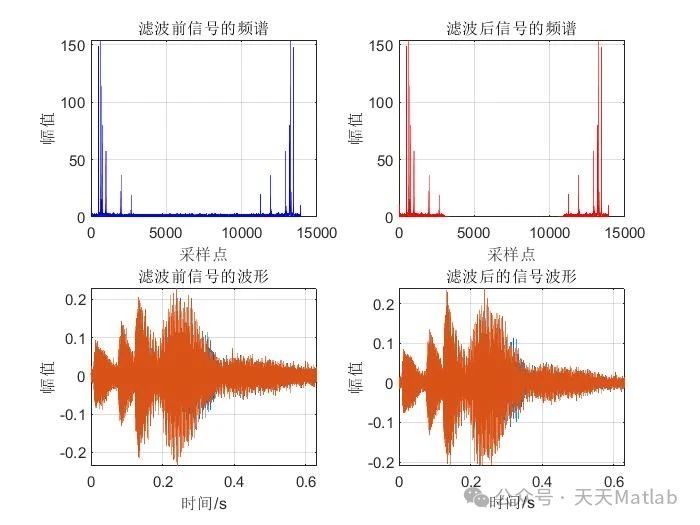 **基于谱减法的LMS自适应滤波:**该方法首先采用谱减法估计噪声谱,然后利用LMS算法对谱减法后的残余噪声进行进一步抑制。LMS算法可以自适应地调整滤波器的权重,以适应噪声的动态变化,从而提高去噪效果。