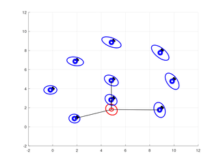 % TODO: Compute the new mu based on the noise-free (odometry-based) motion model% Remember to normalize theta after the update (hint: use the function normalize_angle available in tools)N = (size(mu)(1) - 3)/2; %number of landmarskF = [eye(3) zeros(3,2*N)];%3x2N+3%state transition matrixA = [u.t*cos(mu(3) + u.r1);u.t*sin(mu(3) + u.r1);u.r1 + u.r2]; %3x1%update mumu = mu + F'*A; %2N+3x1 + (2N+3)x3*3x1mu(3) = normalize_angle(mu(3)); %TODO: Go back to this% TODO: Compute the 3x3 Jacobian Gx of the motion modelGx_dtheta = [-u.t*sin(mu(3) + u.r1);u.t*cos(mu(3) + u.r1);0];G_x = [zeros(3,2) Gx_dtheta];% TODO: Construct the full Jacobian GG = eye(2*N+3) + F'*G_x*F; %DxD + Dx3*3x3*3X