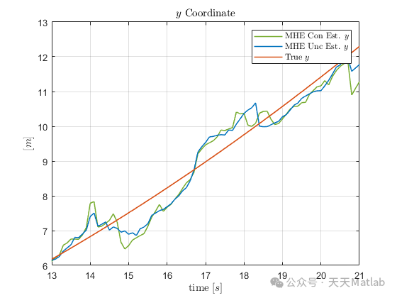 更高的估计精度: 在非线性系统和高噪声环境下,MHE滤波器能够提供比EKF更精确的状态估计。