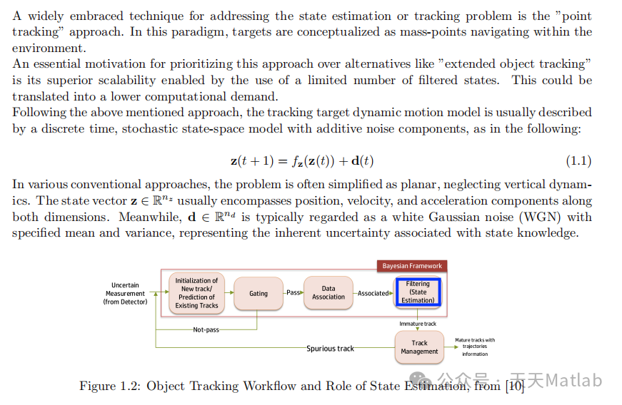 目标检测与跟踪是计算机视觉领域的核心问题,广泛应用于自动驾驶、机器人导航、视频监控等多个领域。然而,实际应用中,传感器测量往往受到噪声、遮挡、光照变化等因素的影响,导致测量结果存在不确定性。这些不确定性会显著影响跟踪精度和系统鲁棒性,进而降低系统的整体性能。传统的线性滤波算法,如卡尔曼滤波,在处理非线性系统和非高斯噪声时存在局限性。而非线性滤波算法,如粒子滤波,计算复杂度高,难以满足实时性要求。 因此,亟需一种能够有效处理非线性系统、利用物理约束,并兼顾实时性的目标跟踪算法。