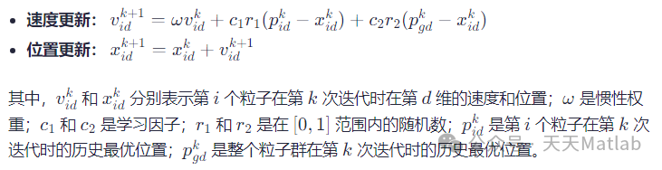粒子群优化算法是一种基于群体智能的优化算法,模拟鸟群觅食行为。每个粒子代表解空间中的一个潜在解,具有位置和速度属性。粒子根据自身历史最优位置(pbest)和群体历史最优位置(gbest)来更新其速度和位置。PSO算法的更新公式如下: