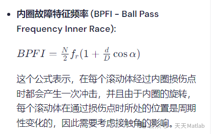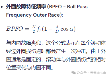 基于这些参数,可以推导出不同部位故障的特征频率计算公式。这些公式通常是在理想化的条件下推导出来的,即假设轴承运转平稳,滚动体之间无滑动,并且接触角固定。