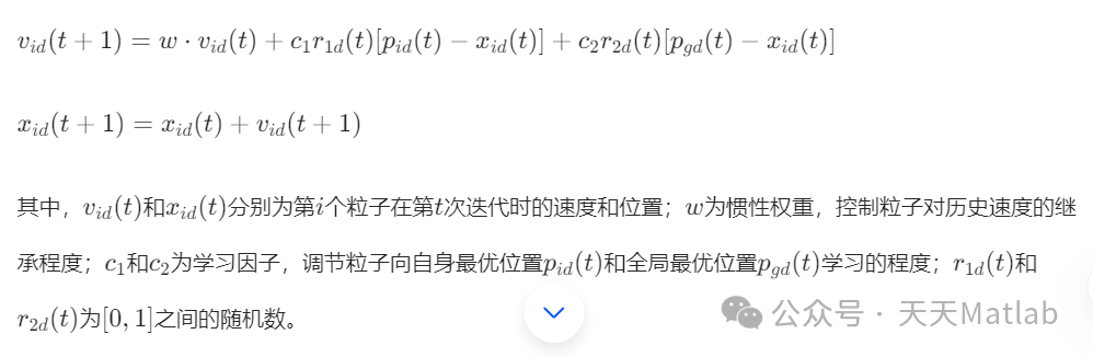 粒子群算法是一种基于群体智能的随机搜索算法,其灵感来源于鸟群觅食或鱼群游动的行为 。在粒子群算法中,每个粒子代表问题的一个潜在解,粒子在解空间中通过不断调整自身位置来搜索最优解 。粒子的位置更新公式为: