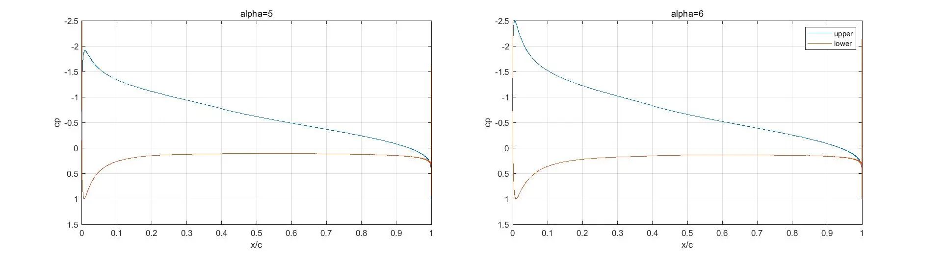 在确定涡强后,利用毕奥 - 萨伐尔定律计算每个涡板块在流场中任意点产生的诱导速度。将所有涡板块产生的诱导速度进行叠加,再加上来流速度,就可以得到整个流场的速度分布。进而,根据伯努利方程,由速度分布计算出压力分布,从而得到翼型表面的压力系数分布。