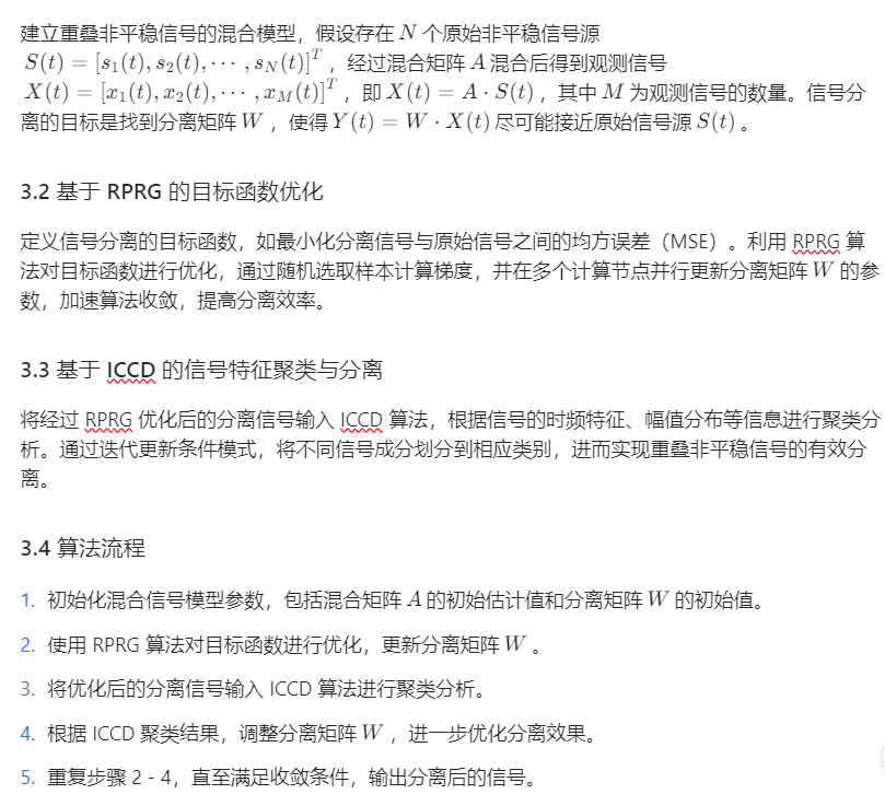 RPRG 是一种基于梯度下降的优化算法,通过在多个计算节点上并行计算随机梯度,加快目标函数的收敛速度。在信号分离问题中,RPRG 可用于优化分离模型的参数,以最小化分离误差为目标,通过不断更新参数,使分离后的信号更接近原始信号源。