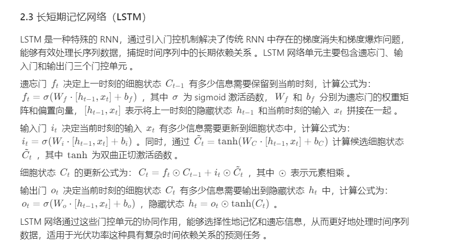 传统的光伏功率预测方法,如时间序列法、回归分析法等,难以有效处理光伏功率数据的非线性和非平稳性 。近年来,深度学习方法在时间序列预测领域展现出强大的优势,其中 LSTM 网络作为循环神经网络(RNN)的改进版本,能够有效捕捉时间序列中的长期依赖关系,在光伏功率预测中得到广泛应用 。但直接使用 LSTM 对原始光伏功率数据进行预测,由于数据的复杂性和高维度,预测精度往往受到限制 。