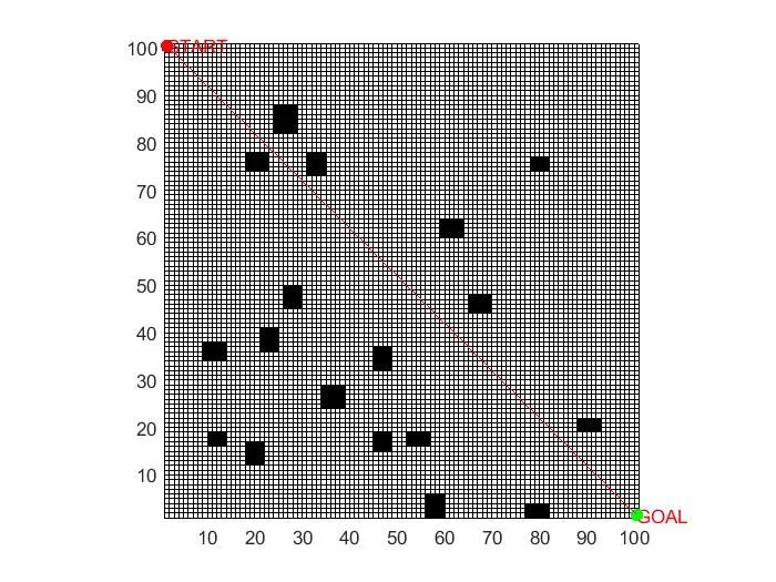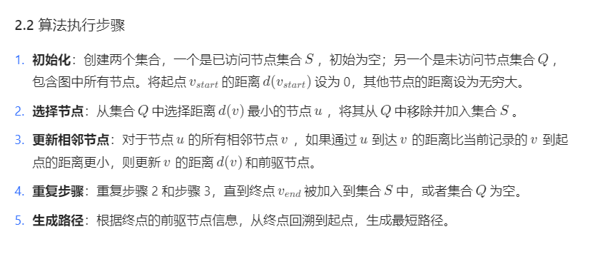 - 路径搜索:运行 Dijkstra 算法,从起点栅格开始搜索,逐步更新各栅格到起点的最短距离和前驱栅格。当终点栅格的最短距离被确定后,算法结束。