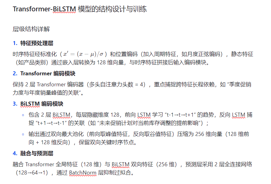 Transformer-BiLSTM 在时序编码模块进行针对性升级,核心差异体现在: