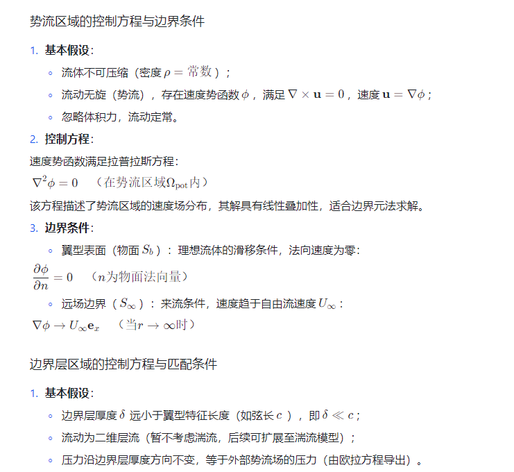 翼型绕流的不可压缩流动可分为两个区域:远离物面的势流区域(黏性效应可忽略)和紧贴物面的边界层区域(黏性效应起主导作用)。耦合模型需分别建立两区的控制方程,并通过匹配条件实现衔接。