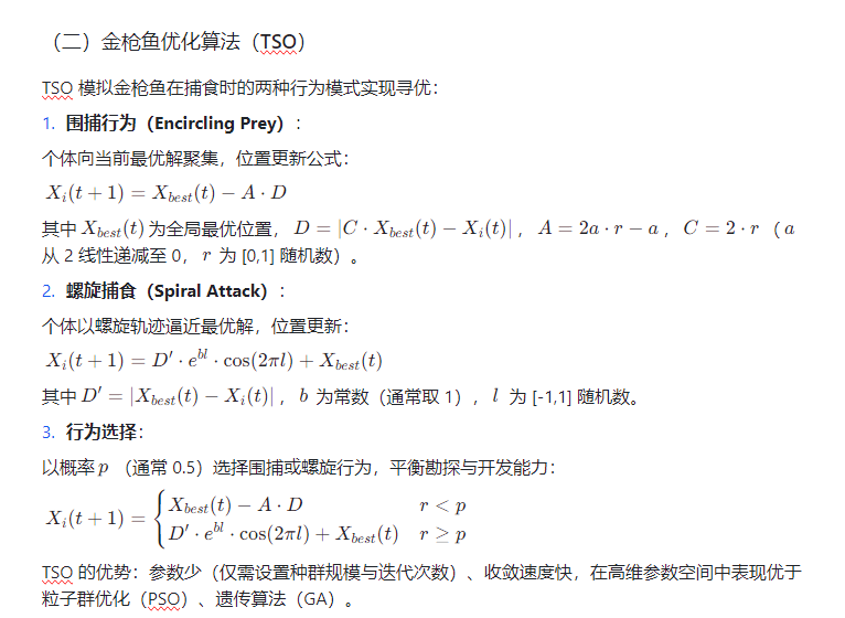 在多变量回归预测领域,随机森林(Random Forest, RF)凭借对非线性关系的捕捉能力和抗过拟合特性,被广泛应用于多输入单输出场景(如工业参数预测、环境因子关联分析)。然而,RF 的预测性能高度依赖于超参数(如决策树数量、最大深度),传统网格搜索或随机搜索方法存在效率低、易陷入局部最优的问题。金枪鱼优化算法(Tuna Swarm Optimization, TSO)模拟金枪鱼群体的捕食与迁徙行为,具有寻优精度高、收敛速度快的优势,适用于超参数优化。结合交叉验证(Cross-Validation)进一步提升模型的泛化能力,TSO-RF 框架可实现 “高效寻优 + 强泛化 + 可解释” 的多变量回归预测,为复杂数据关系建模提供新方案。