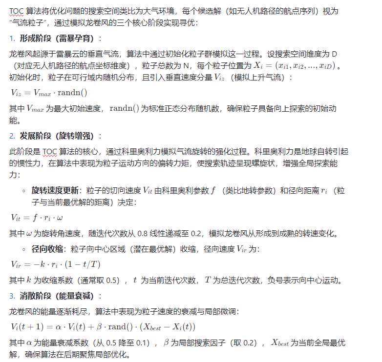 2025 年提出的龙卷风优化算法(Tornado Optimizer with Coriolis force, TOC)是一种新型自然启发式元启发式算法,其核心灵感来源于龙卷风从形成到消散的完整演化过程,尤其引入科里奥利力(Coriolis force)模拟气流旋转特性,为高维多目标优化问题提供了全新的搜索机制。